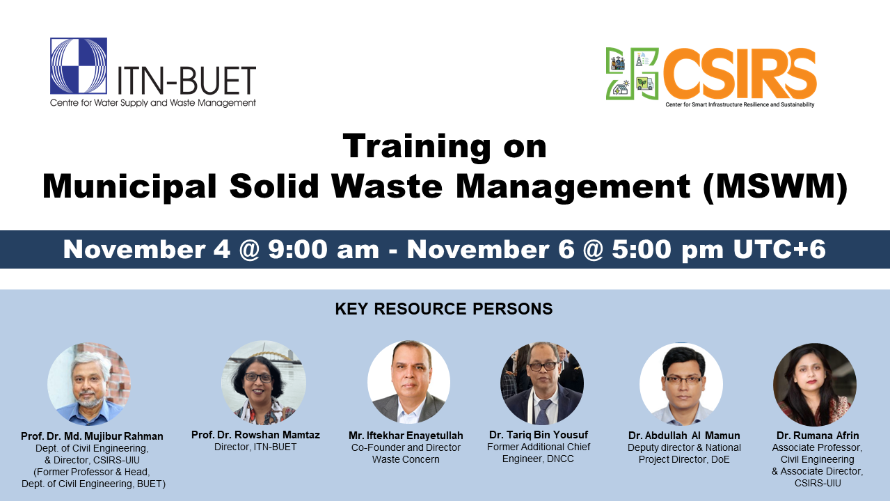 Training Programs Our Training Programs Upcoming Training Programs Training on Municipal Solid Waste Management (MSWM)
